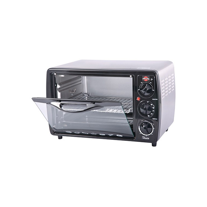 آون توستر پارس خزر مدل وستا یکی از آون های زیبا و کارآمد این شرکت است. در این محصول بدنه خارجی از جنس استیل با پوشش ضد لک و بدنه داخلی فلزی با پوشش آلومینیوم ساخته شده است. نشانگر روشن و خاموش بودن محصول روی دستگاه دیده می شود. آون توستر پارس خزر مدل وستا مجهز به سیستم جوجه گردان ساعتگرد و پاد ساعتگرد است تا پخت جوجه به بهترین شکل انجام گیرد. در دستگاه دارای 2 قطعه ضربه گیر از جنس سیلیکون می باشد تا صدای ضربه نداشته و شیشه نشکند. آون توستر دارای قابلیت استفاده همزمان و مجزای جوجه گردان و گردش هوای گرم است. کلید تنظیم حرارت در 6 حالت وجود دارد. سینی طبخ غذا و توری کباب پز نیز همراه این آون توستر عرضه می شود. پیچ های سه گانه تنظیم دستگاه از جنس مرغوبی ساخته شده اند و تنظیم دستگاه به راحتی انجام می شود. مدل وستا مجهز به 4 المنت میله ای (2 عدد بالا/2 عدد پایین) است که باعث افزایش بازدهی پخت دستگاه می شود. پارس خزر تولید و عرضه کننده لوازم خانگی برقی است که موفقیت های بسیاری در به دست آوردن رضایت مشتریان وفادار خود داشته است.